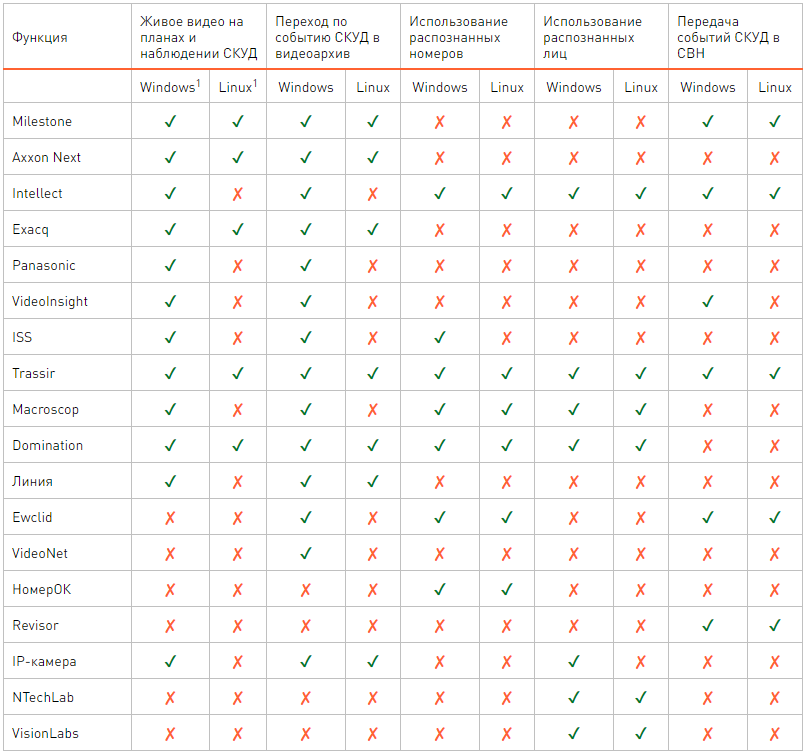 Примечание 1: выбор той или иной операционной системы относится к серверу СКУД.